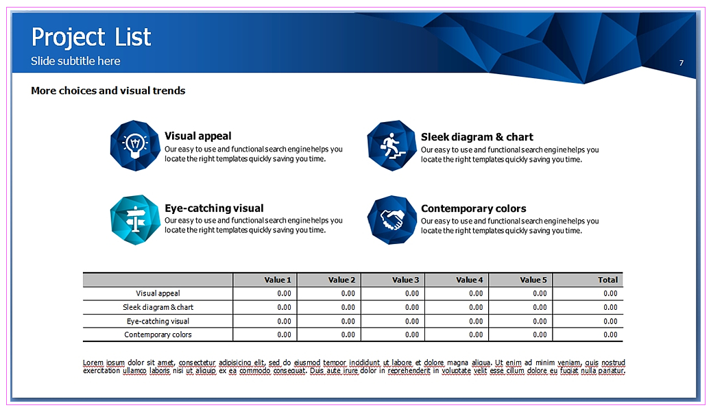 근데 포인트를 주고 싶으면 그냥 옛날 소스 가져가서 바르면 돼요 다 새로 만들 필요는 없고, 전에 만든 거랑 이번에 만든 거랑 완전히 따로 생각할 필요도 없어요. 위의 작업 이미지는 이전에 포토샵이라는 컨셉으로 만들어진 소재에 포함되어 있었습니다. 컬러 톤으로 마무리했습니다. 굉장히 심플하고 색깔도 딱 정해서 두 가지 모양을 넣고 그냥 과거 소스를 가져와서 굉장히 예쁘고 깔끔한 ppt 템플릿을 만들었는데 하나 더 덧붙일 수 있는 게 있다면 색상과 기본 모양 말고도 섀도우 효과라고 할 수 있습니다.